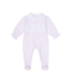 Dit schattige velours boxpakje van Deolinda is lichtroze van kleur versierd met kleine stipjes. Het pakje heeft een rond katoen wit kraagje en een witte smok band over de borst lopen, deze smok band is versierd met roze borduursel en super lieve luchtballonnen, wat op dit moment een zeer populair thema is. Het babypakje heeft voetjes en lange mouwen, de lange mouwen hebben hebben elastiek waardoor de uiteinden sierlijk uitlopen, ook vind je hier een klein wit strikje als subtiel mooi detail.