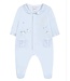 Dit warme babypakje van Tartine et Chocolat is gemaakt van zachte lichtblauw velours en behoort tot de verfijnde garda-collectie. De voorkat is versierd met subtiele borduursels van schaapjes (mouton), sterretjes en een maantje, wat het pakje een dromerige uitstraling geeft.