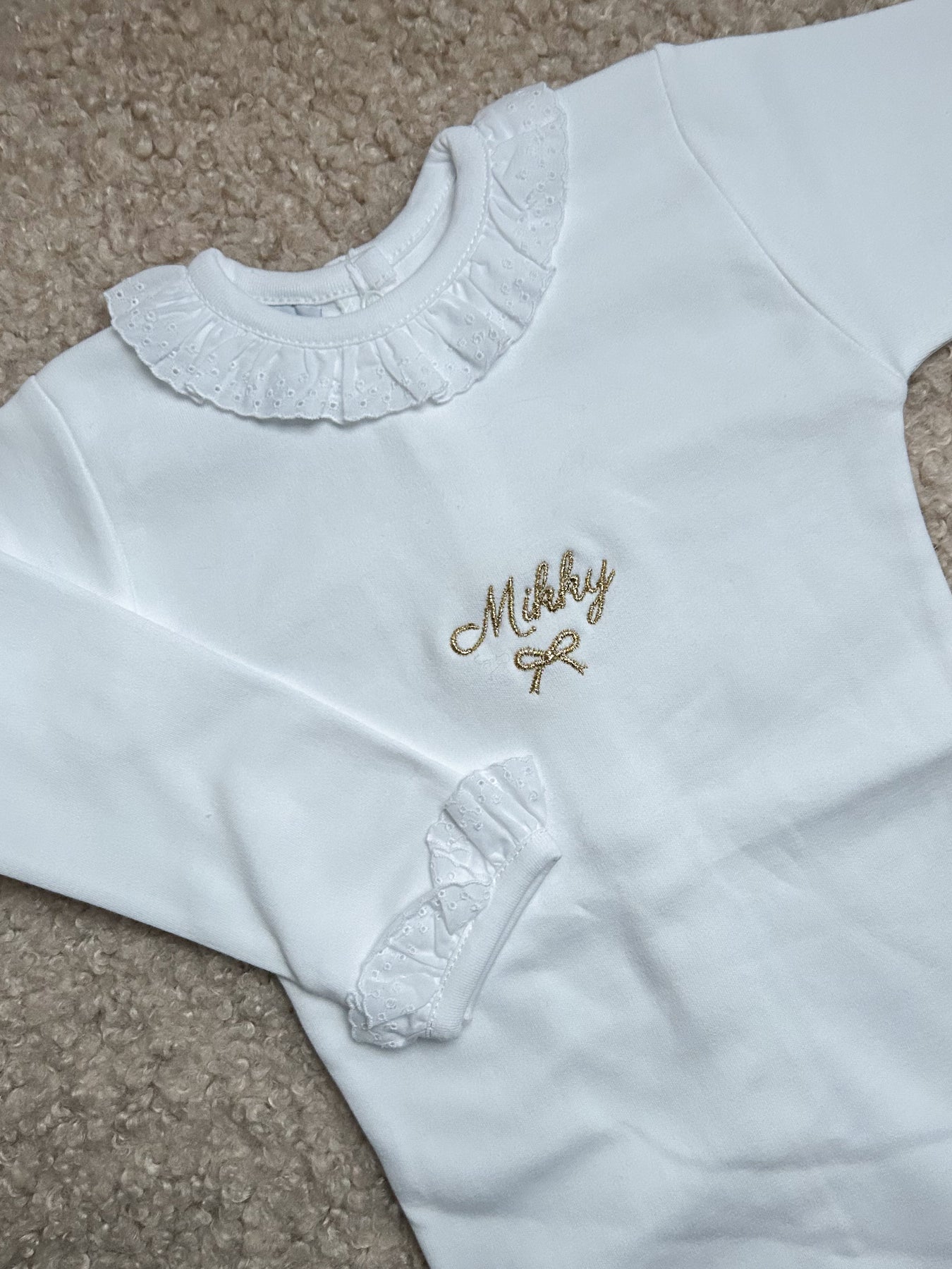 Romper broderie kraag + manchetten lange mouw - Babidu