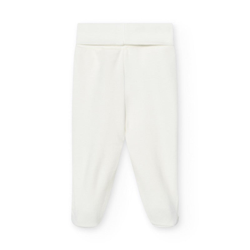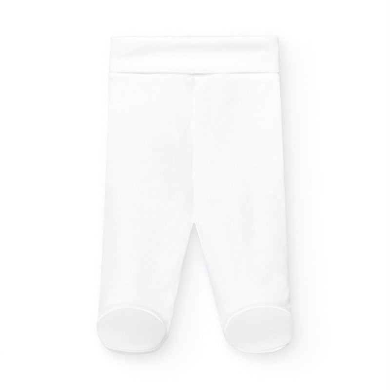 Dit schattige Babidu babybroekje met voetjes is een echte musthave in de babyuitzet. Gemaakt van 100% katoen en voorzien van een brede, elastische omslagband die je zowel omgeslagen als recht kunt dragen. De band sluit zacht aan op het buikje en zorgt ervoor dat het broekje meegroeit met je baby - ideaal in de eerste maanden.