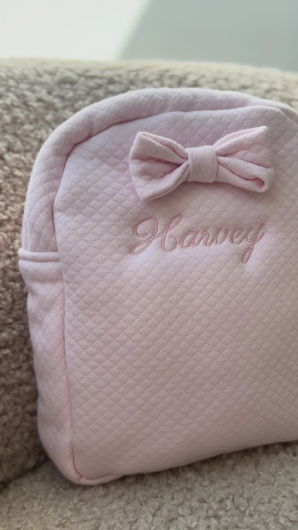 Op zoek naar het perfecte rugtasje voor jouw peuter op kleuter? Dit schattige én praktische rugtasje is gemaakt van een zachte losange katoenen stof die je gemakkelijk kunt wassen. Ideaal voor de opvang, school of dagjes weg. Een perfect eerste eigen tasje. Verkrijgbaar in: lichtblauw, lichtroze, wit, beige en grijs
