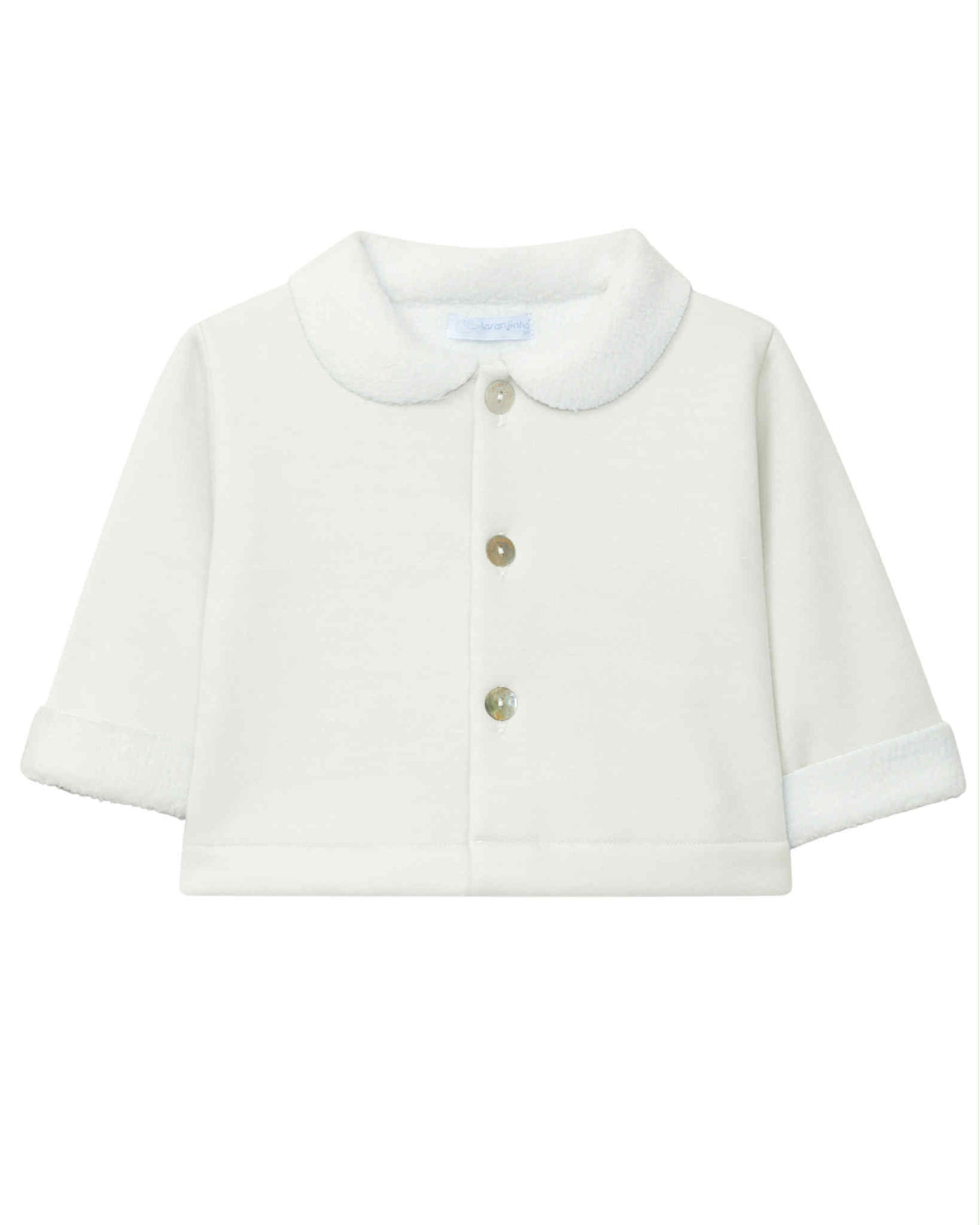 Met het schattige Peter Pan kraagje van faun for en de warme, comfortabele voering is dit jasje perfect voor het najaar, kouden winterdagen en het voorjaarsdag. Ideaal om jouw kindje warm te houden wanneer hij of zij in de reiswieg ligt. Een prachtig klassiek en tijdloos jasje welke door de wol witte kleur eigenlijk overal mee is te combineren.