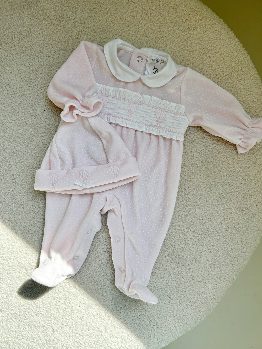Mutsje Pink Garden party velours (roze) - Theophile et Patachou