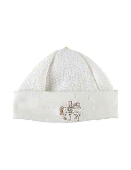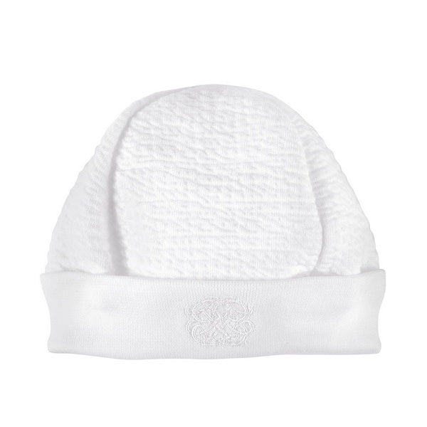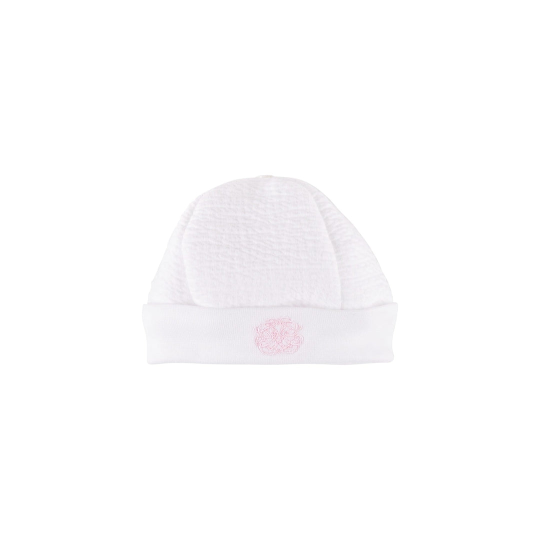 Mutsje gewafeld katoen ( wit met roze borduur) - Theophile et Patachou