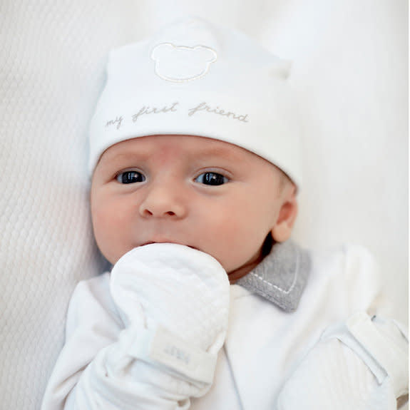 Mutsje My first friend streep (wit/lichtblauw) - First (My First Collection)
