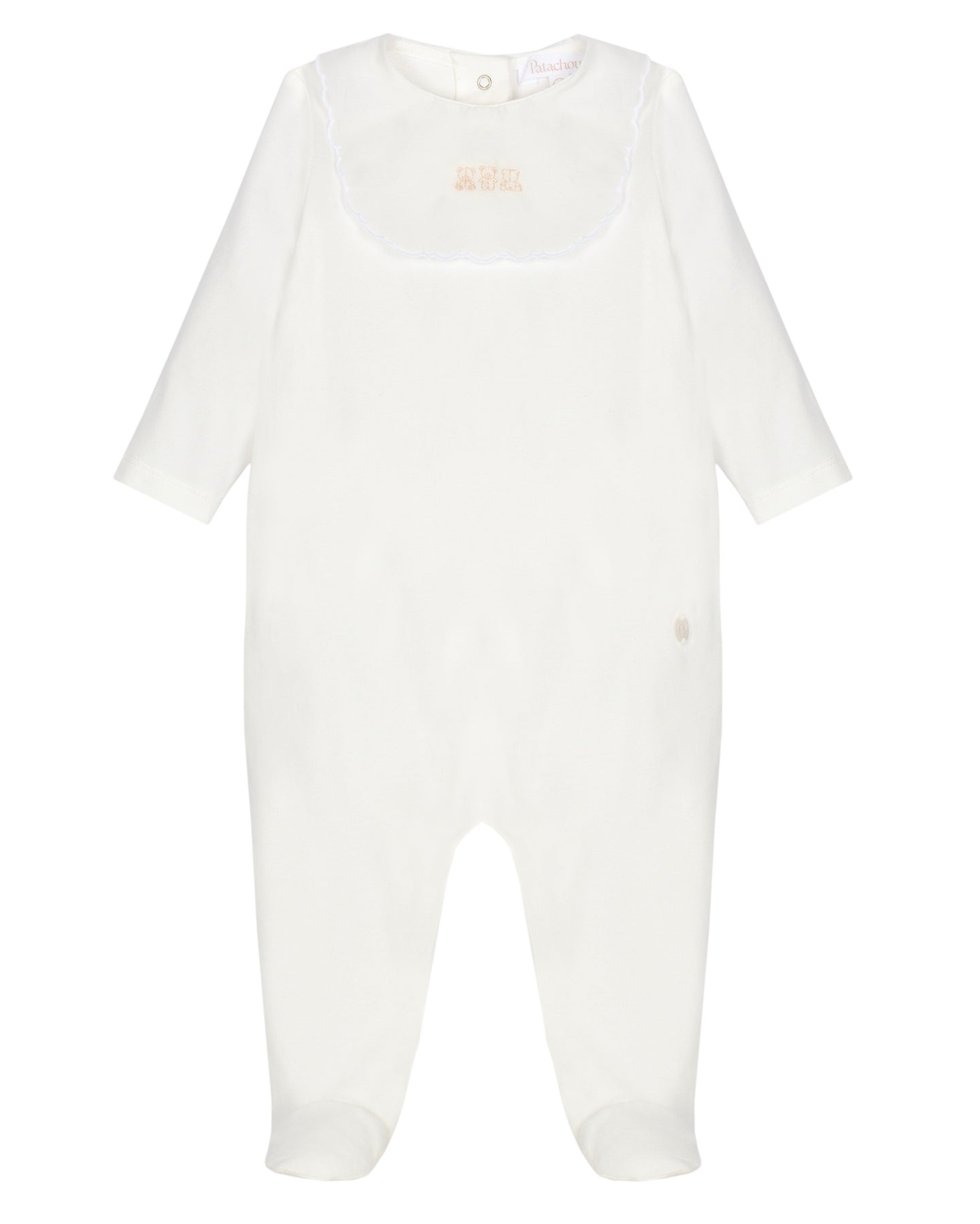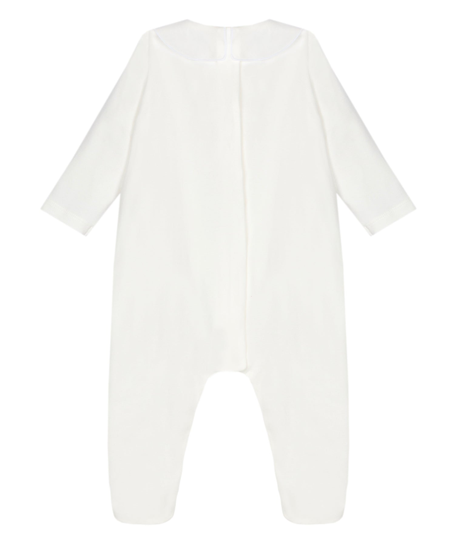 De verfijnde bef met subtiel geborduurde beertjes geeft dit babypakje een lieve, klassieke uitstraling. De neutrale kleur en het minimalistische design maken het een perfect unisex babypakje, geschikt voor zowel jongens als meisjes. de lange mouwen en voetjes zorgen ervoor dat je baby warm en comfortabel blijft, terwijl de praktische sluiting het aan- en uitkleden eenvoudig maakt.