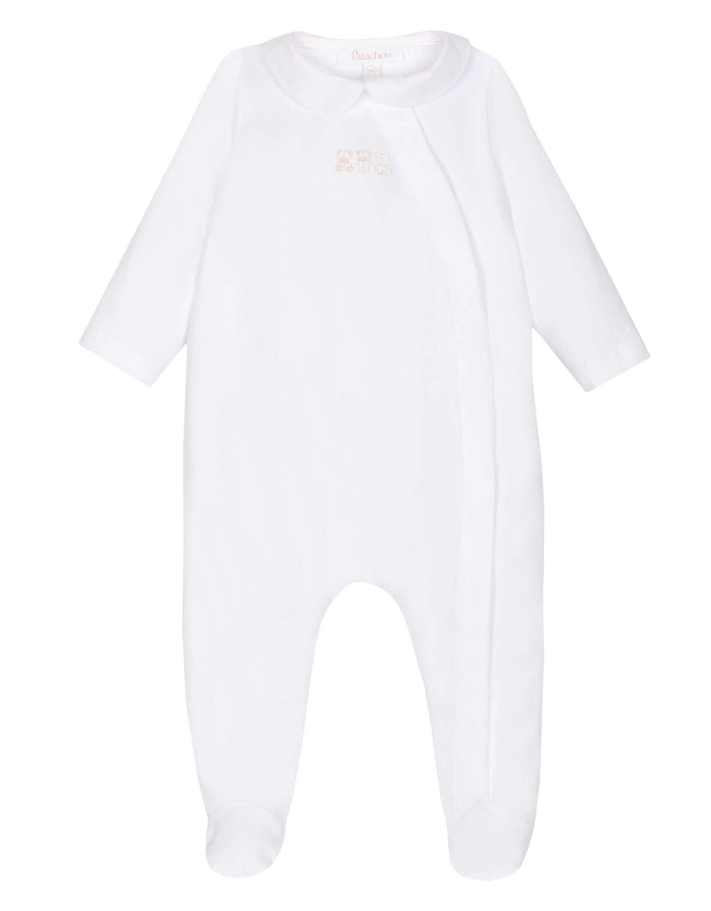 Wit katoenen babypakje met kraag en geborduurde beertjes - uniseks | Patachou