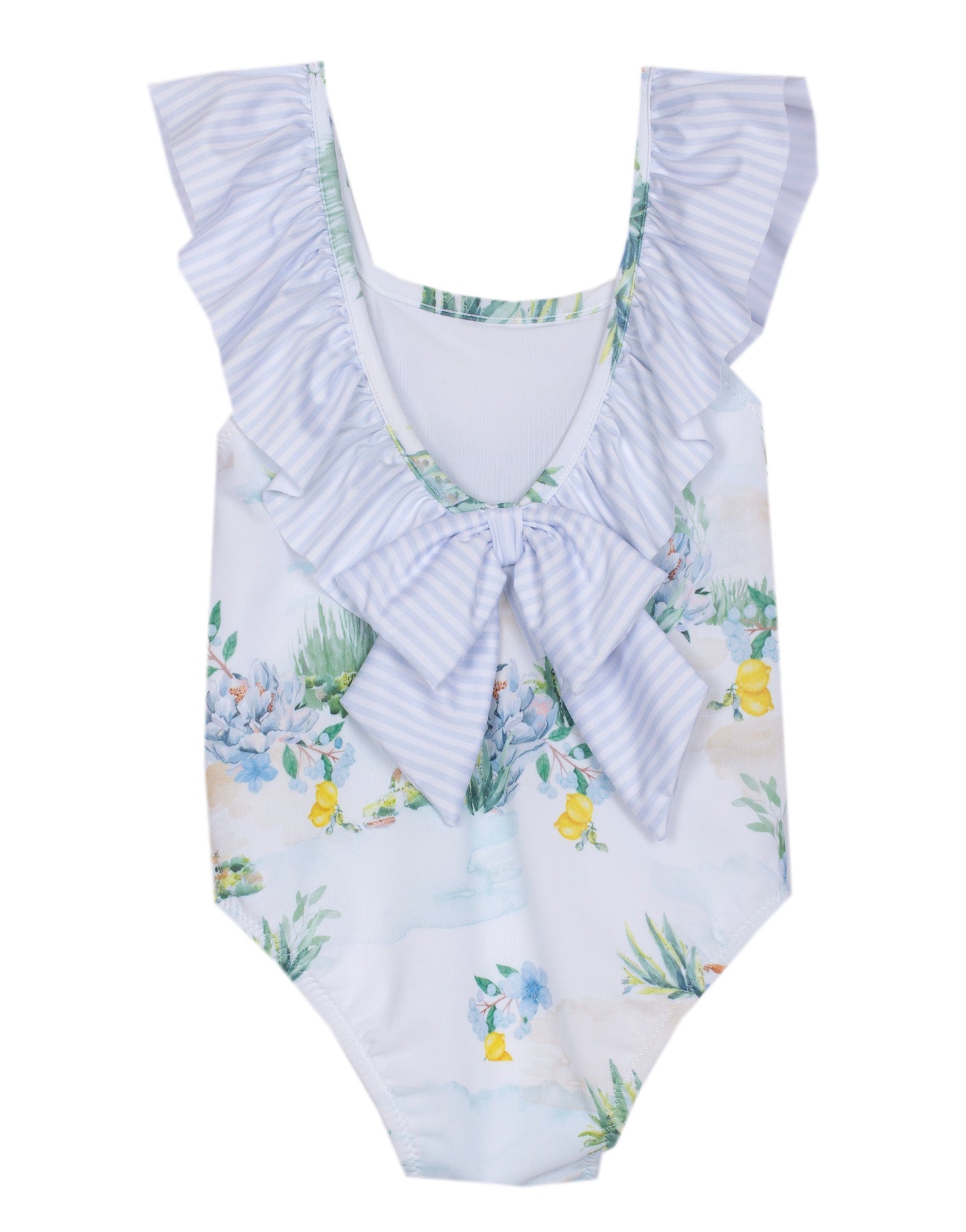 Baby en meisjes badpak van Patachou uit de Saint-Tropez collectie met ruffles en mediterrane print