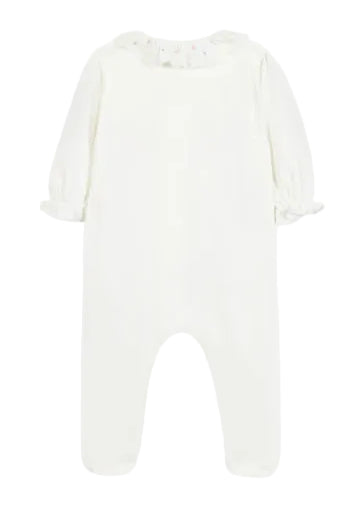 Dit verfijnde boxpakje van Tartine et Chocolat is gemaakt van 100% katoen en uitgevoerd in een zachte, crèmekleurige tint met een elegante geborduurde details . De comfortabele pasvorm en klassieke kraag zorgen voor een tijdloze en luxe uitstraling.
