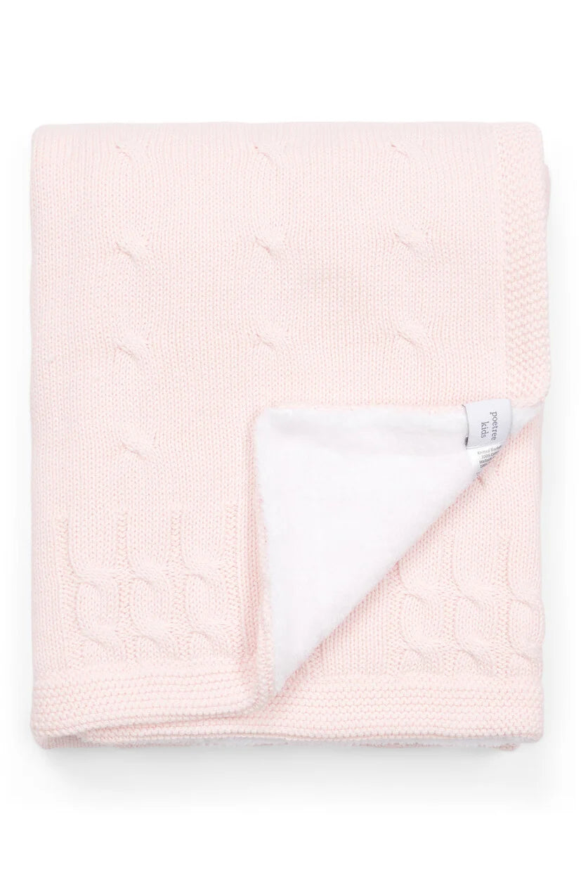 Deze stijlvolle babydeken van Poetree Kids is een echte musthave voor pasgeboren kleintjes. De buitenkant is prachtig fijn gebreid met een klassiek kabeldesign en de binnenkant heet een heerlijk zachte Charmonix voering die extra warmte en comfort biedt.