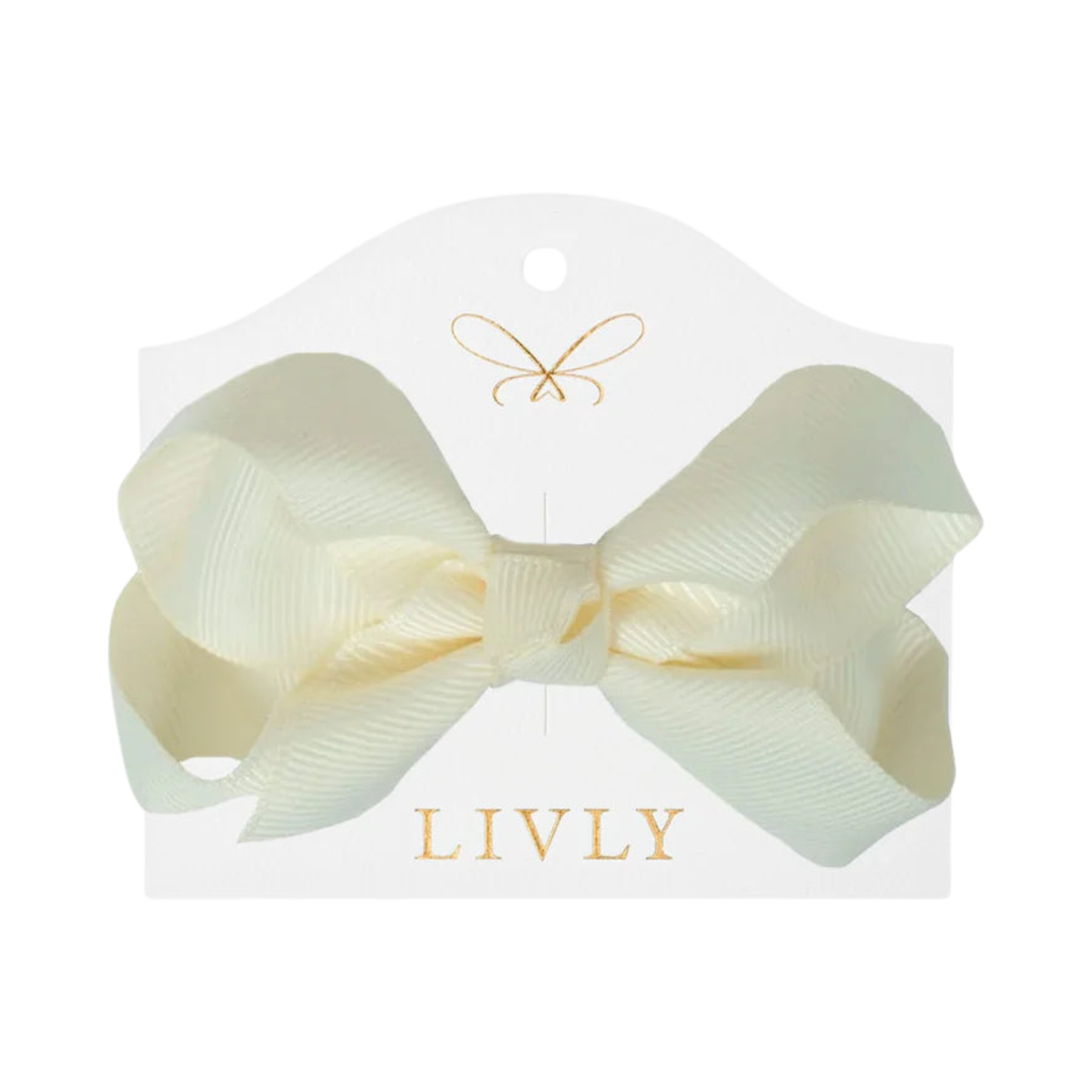 De iconische LIVLY haarclip in medium formaat is de perfecte finishing touch voor elke outfit. De strik heeft een verfijnde afwerking met geborduurde rand en is verkrijgbaar in verschillende zachte en stijlvolle kleuren.