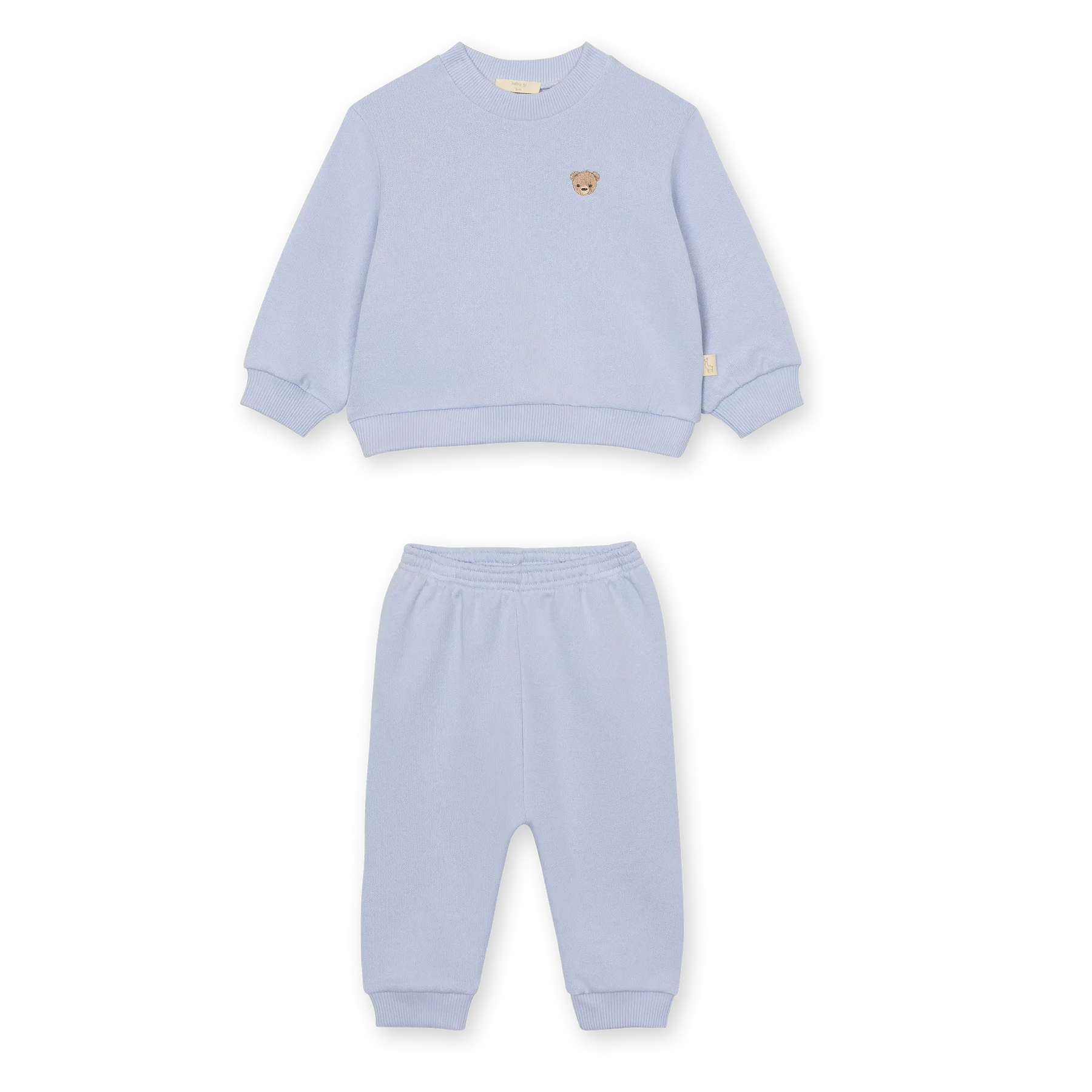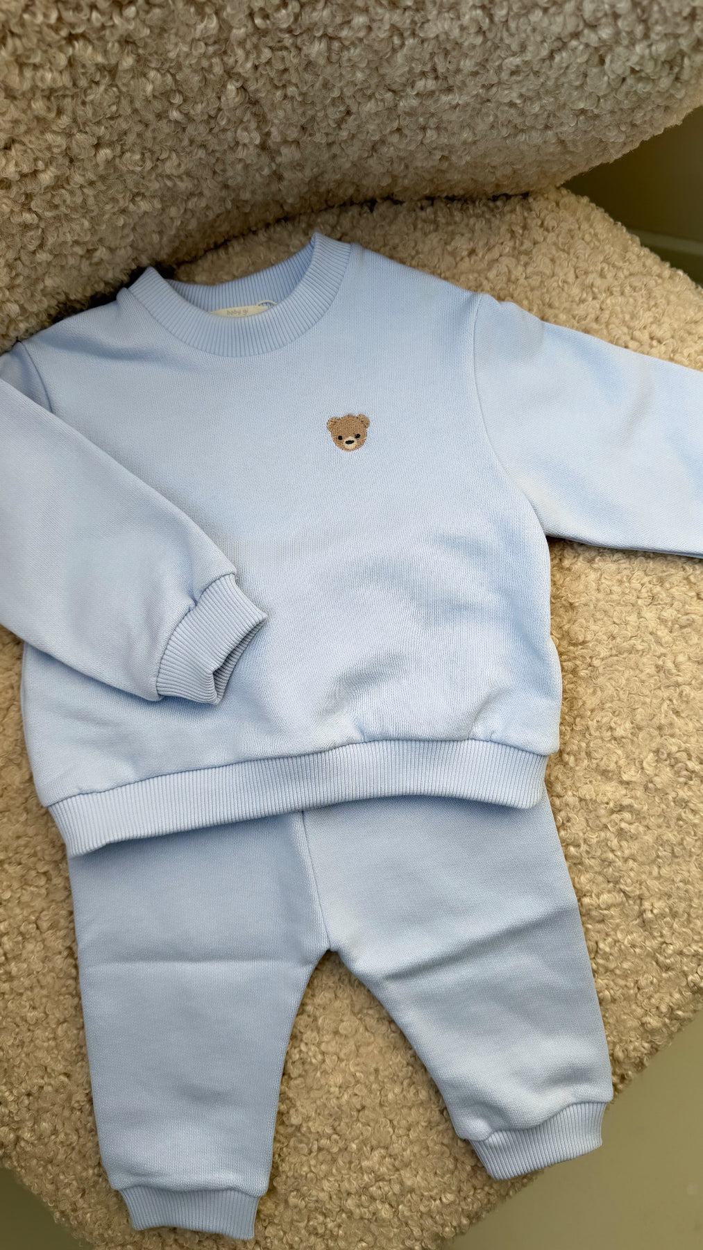 Dit tweedelige Baby Gi joggingpak is een echte must-have voor newborns en baby's. Het setje bestaat uit een zachte sweater met subtiel geborduurde teddybeer en een bijpassend joggingbroekje met elastische tailleband.