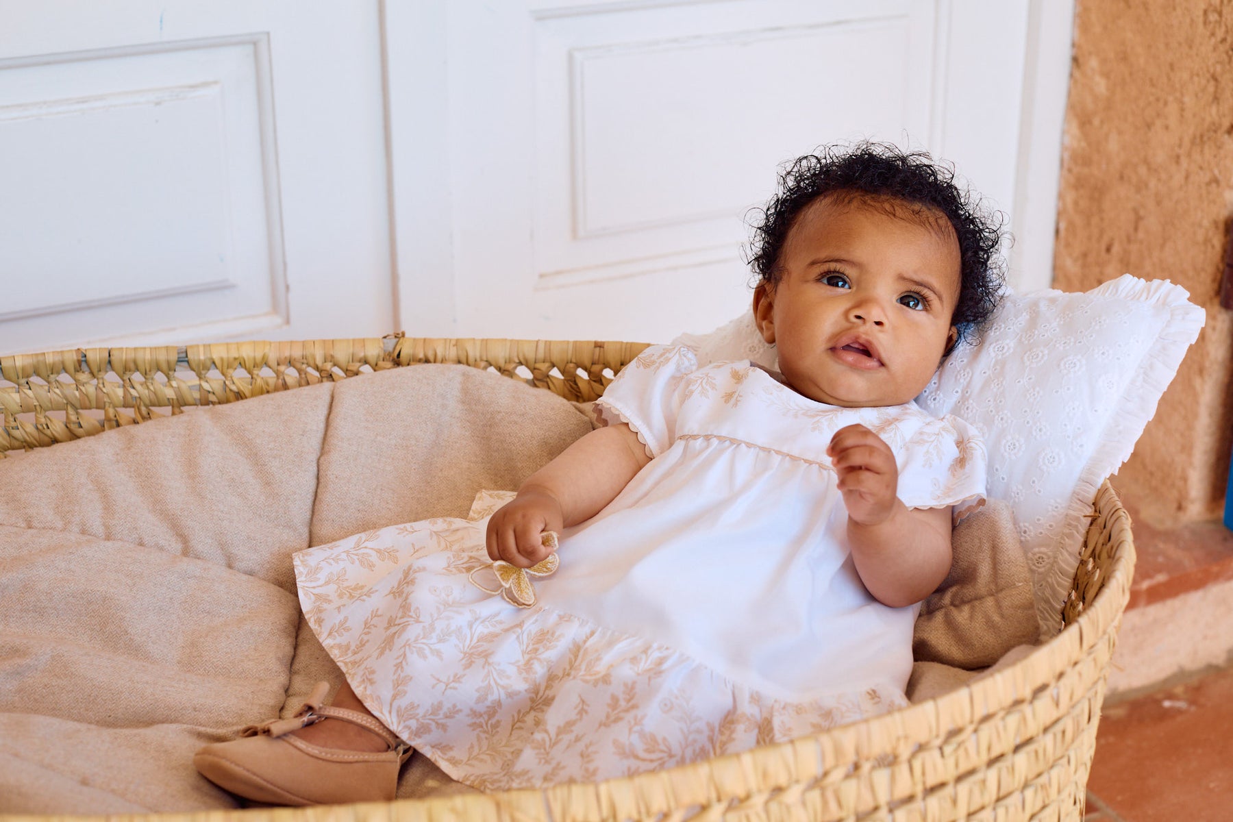 D korte mouwtjes en de soepel vallende rok geven het jurkje een luchtige ;ook, perfect voor baby's en jonge meisjes. Dankzij het tijdloze ontwerp is dit jurkje ideaal voor bijzondere momenten zoals feestjes, doopsels, een fotoshoot of zomerse dagen.