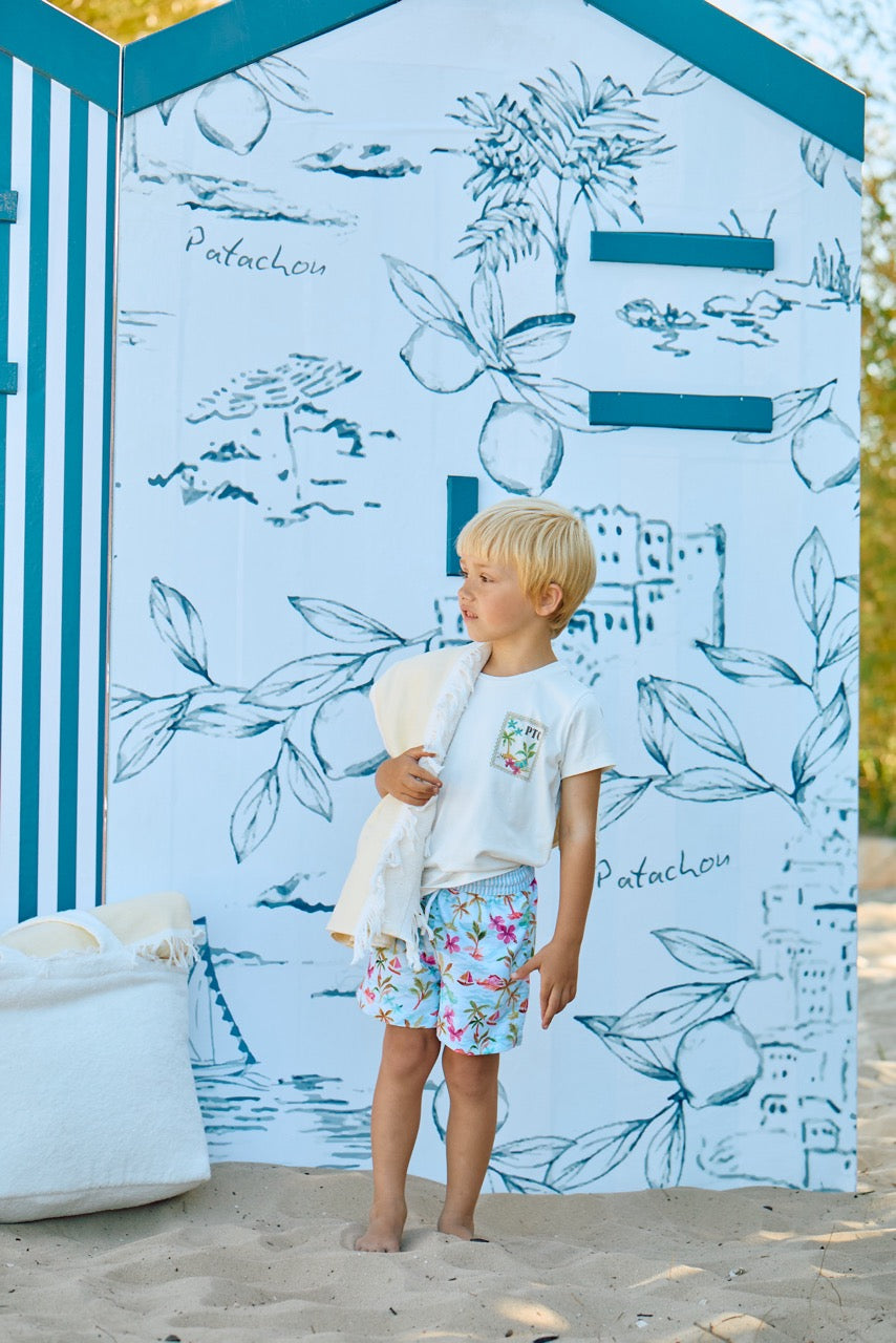 Offwhite zomers T-shirt ban Patachou met subtiele zomerse print, perfect te combineren met het bijpassende zwembroekje