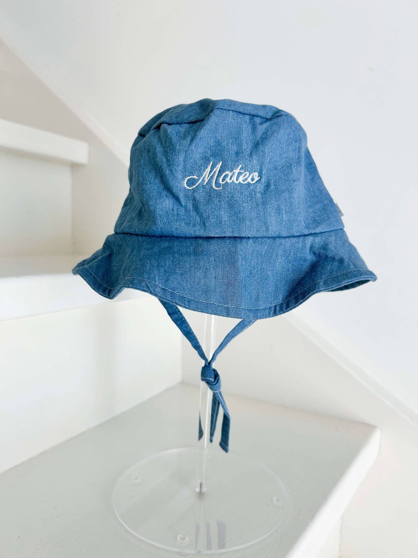 Bescherm jouw kleintje stijlvol tegen de zon me die schattige vissers zonnehoedje, speciaal ontworpen voor de allerkleinsten. Gemaakt van een soepele jeansstof gevoerd met zachte katoenen stof welke fijn doorademt. Het strik lintje zorgt ervoor dat het hoedje goed blijft zitten, zelf als je kindje lekker bewegelijk is. Dankzij dit tijdloze ontwerp is het hoedje perfect voor zowel jongens als meisjes en kan gepersonaliseerd worden met de naam, initiaal of iets anders leuks. Een uniek cadeau welke bij elke outfit matching is!