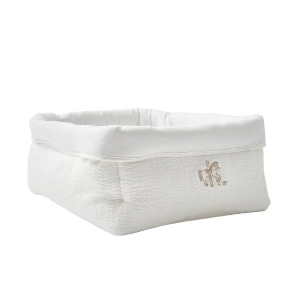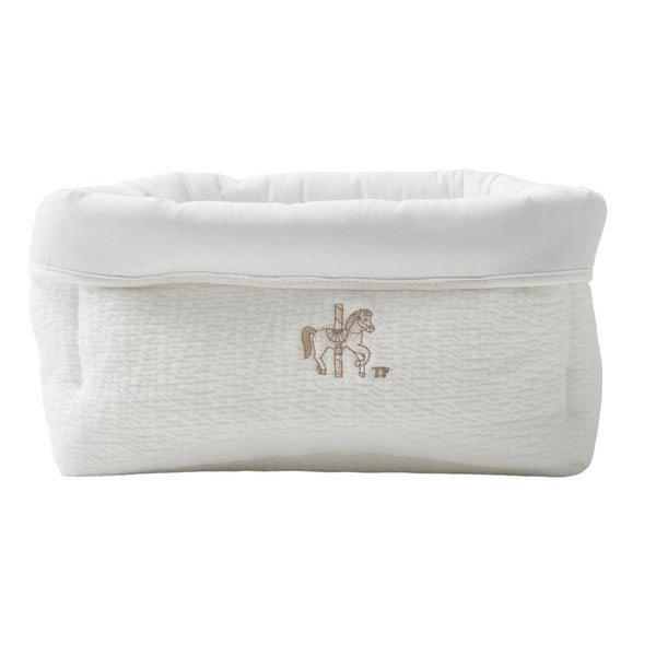 Grote verzorgingsmand uit de Carrousel collectie van het merk Theophile et Patachou. De mand van gewafeld katoen is afgewerkt met een delicaat borduurwerk. Van het merk Theophile et Patachou.