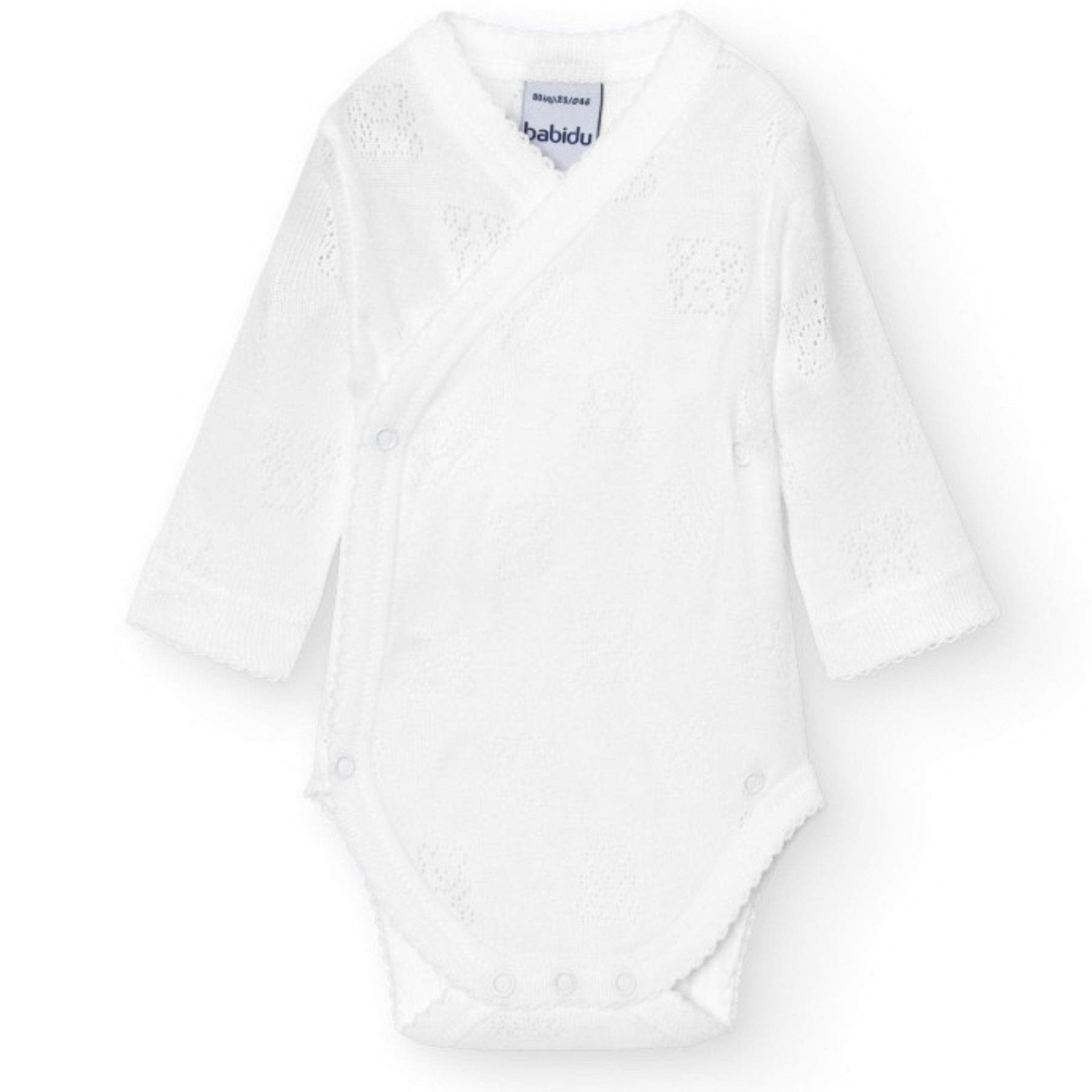 Deze prachtige Babidu romper met lange mouwen is gemaakt van zacht, comfortabel katoen en heeft een verfijnde uitgewerkt beertjesmotief in de stof. De subtiele structuur zorgt voor een lieve, elegante uitstraling. Bij deze romper is er ook een bijpassend broekje verkrijgbaar, waardoor j eenvoudig een complete, stijlvolle outfit samenstelt