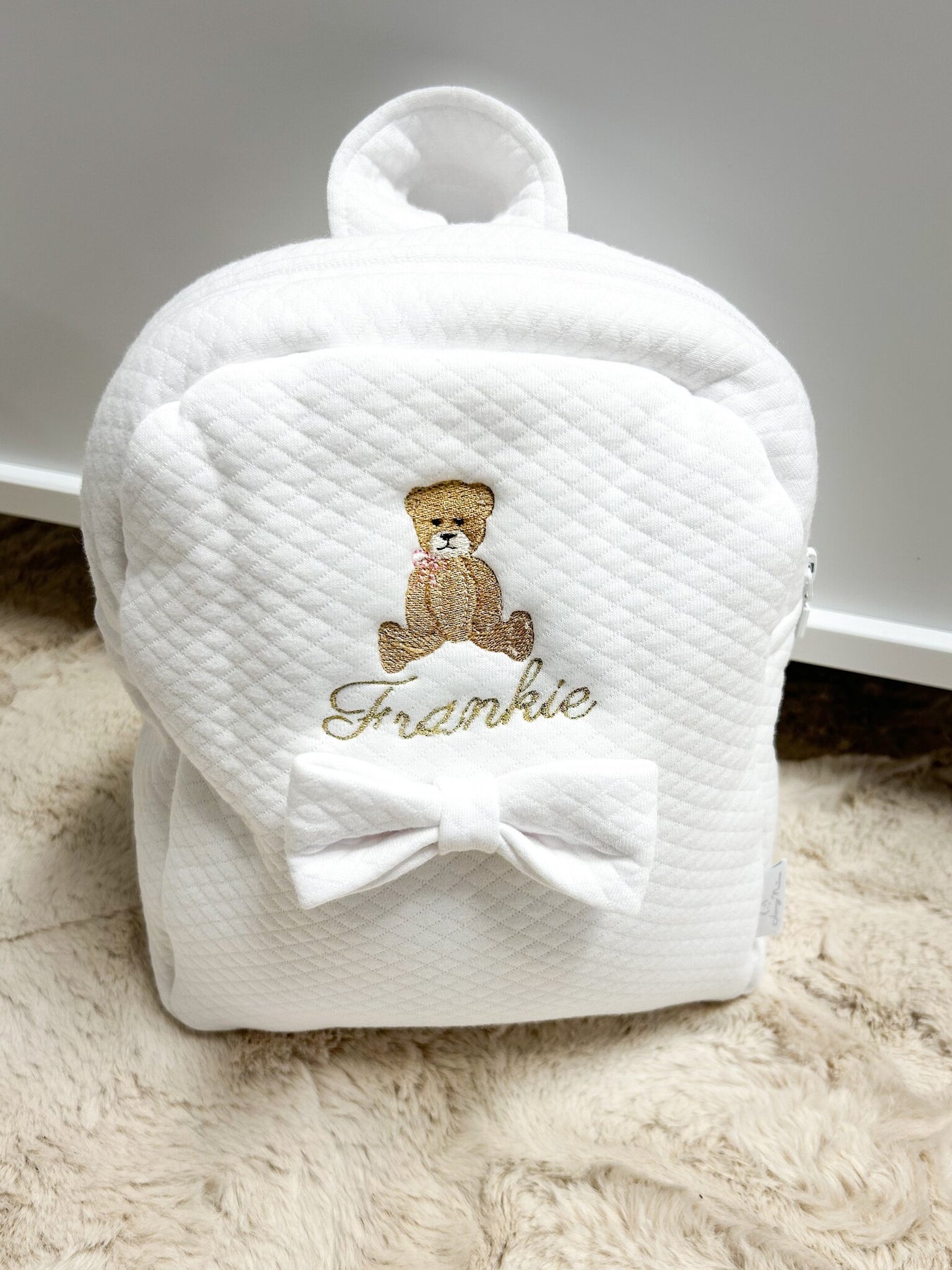 Op zoek naar het perfecte rugtasje voor jouw peuter op kleuter? Dit schattige én praktische rugtasje is gemaakt van een zachte losange katoenen stof die je gemakkelijk kunt wassen. Ideaal voor de opvang, school of dagjes weg. Een perfect eerste eigen tasje. Verkrijgbaar in: lichtblauw, lichtroze, wit, beige en grijs