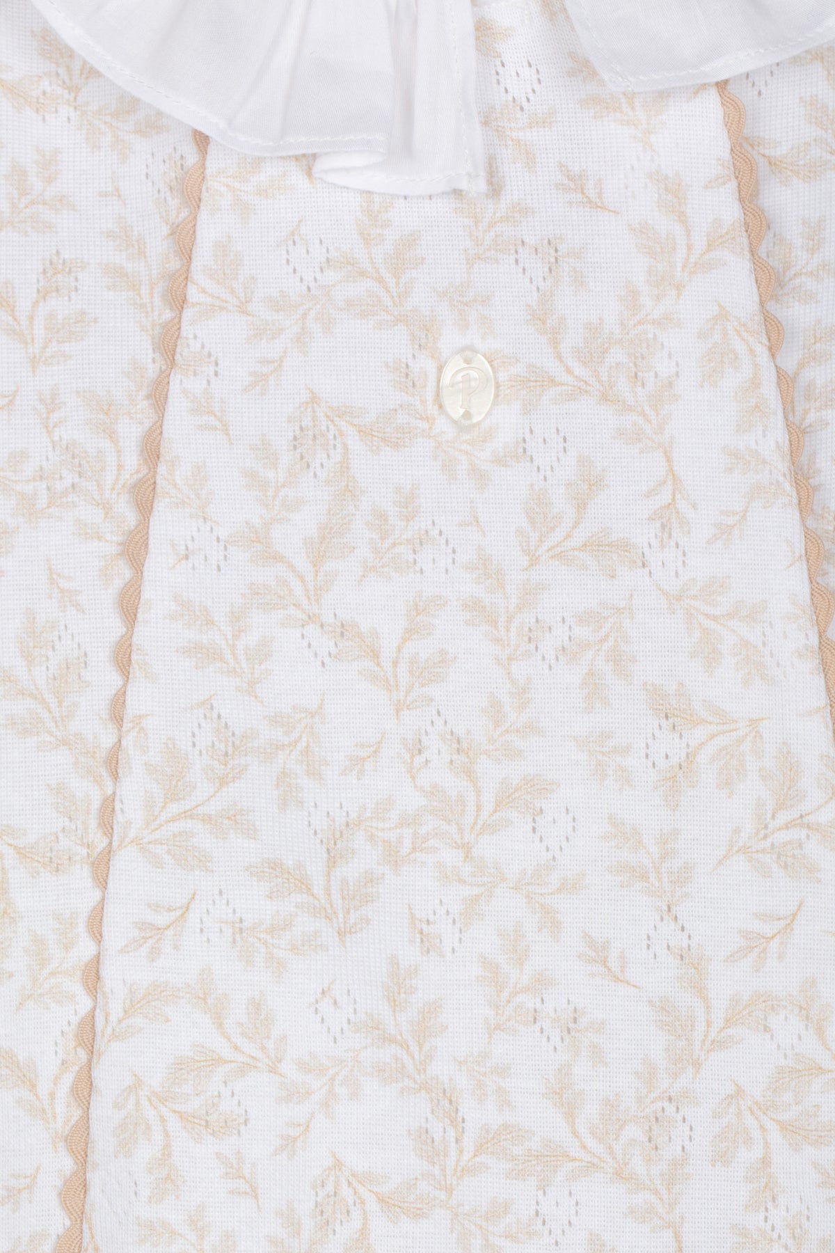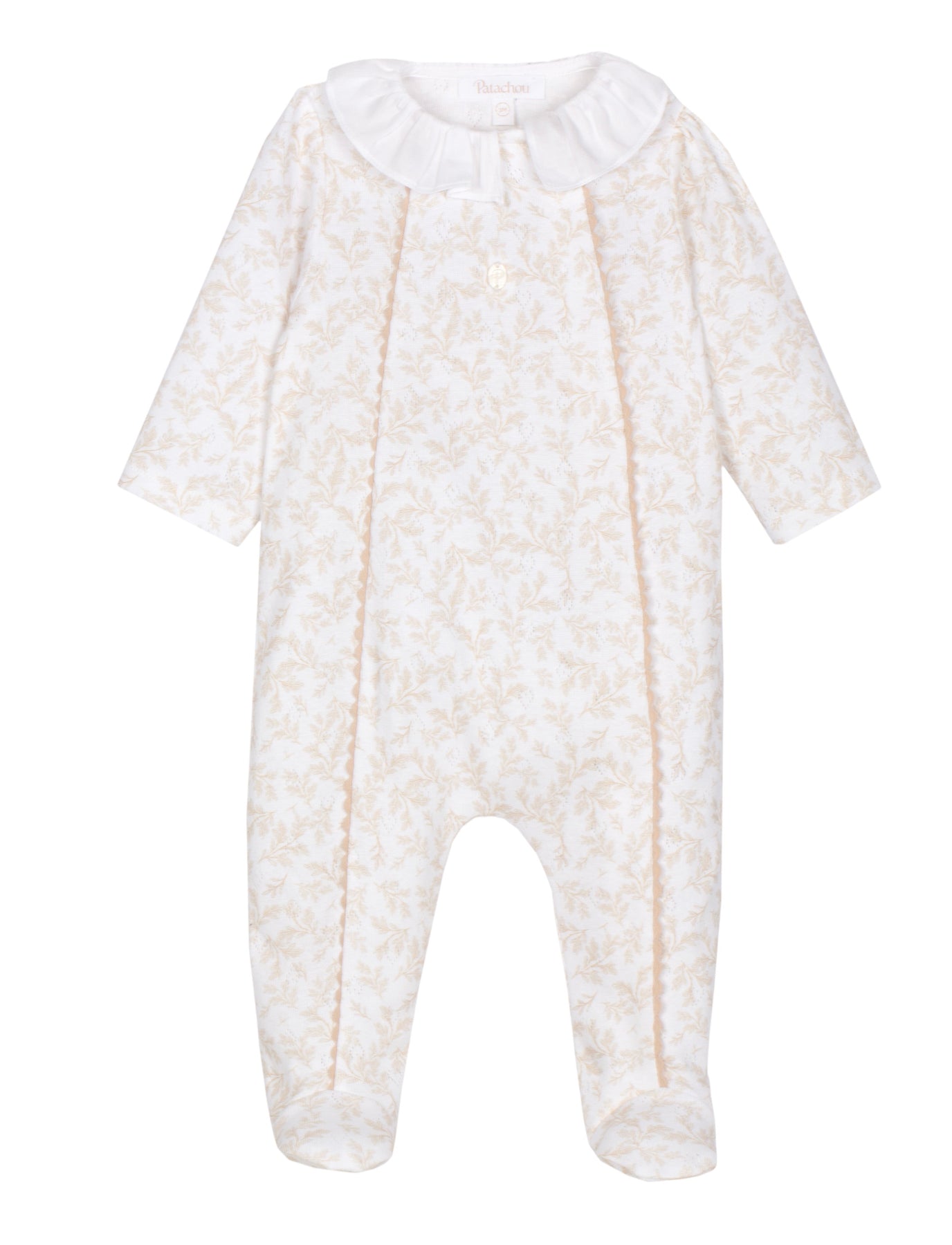 Dit elegante babypakje van Patachou is gemaakt van zacht ajour katoen en uitgevoerd in een subtiele bladprint in warme beige tinten. De luchtige ajour structuur zorgt voor een verfijnde uitstraling en optimaal draagcomfort voor pasgeboren baby's, een luchtig zomer boxpakje.