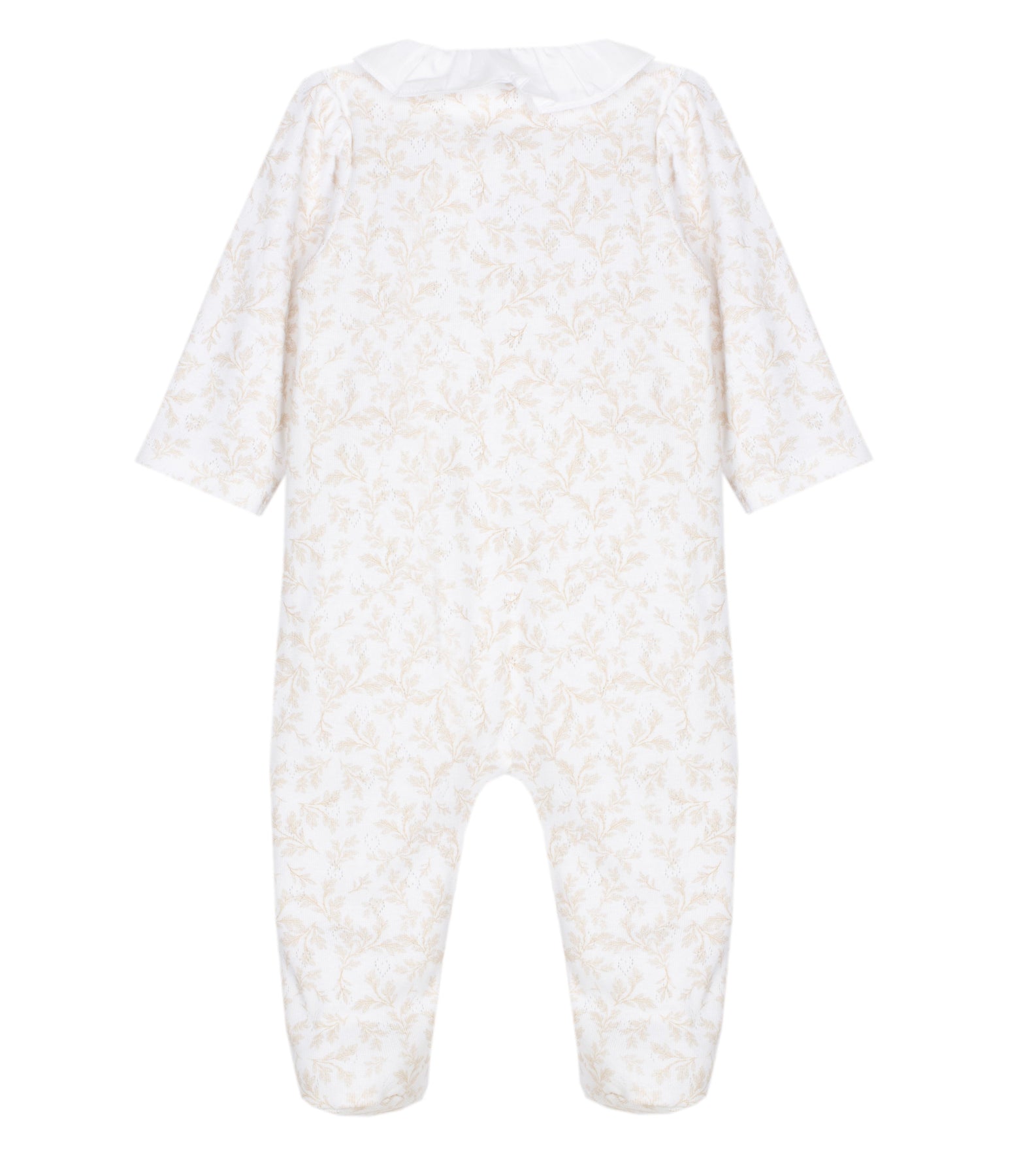 De klassieke witte kraag, lange mouwen en gesloten voetjes geven het pakje een tijdloze en luxe afwerking. Dankzij de ademende stof en comfortabele pasvorm is dit pakje perfect om dagelijks te dragen bij je kleine meisje.