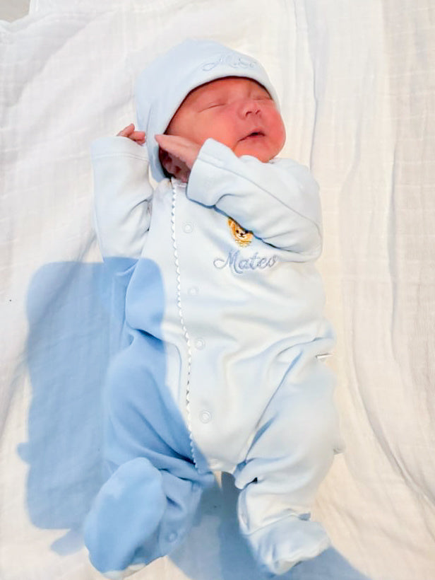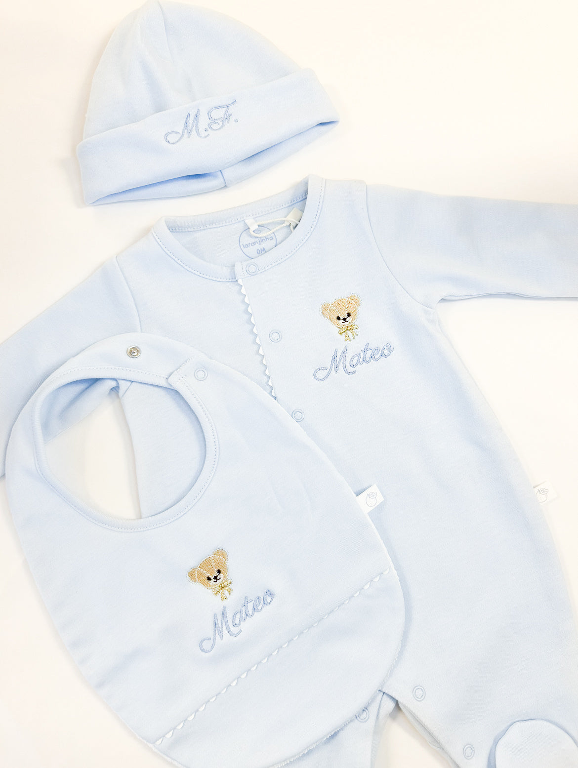 Dit geliefde geboortepakje is verkrijgbaar in drie zachte klassieke kleuren: