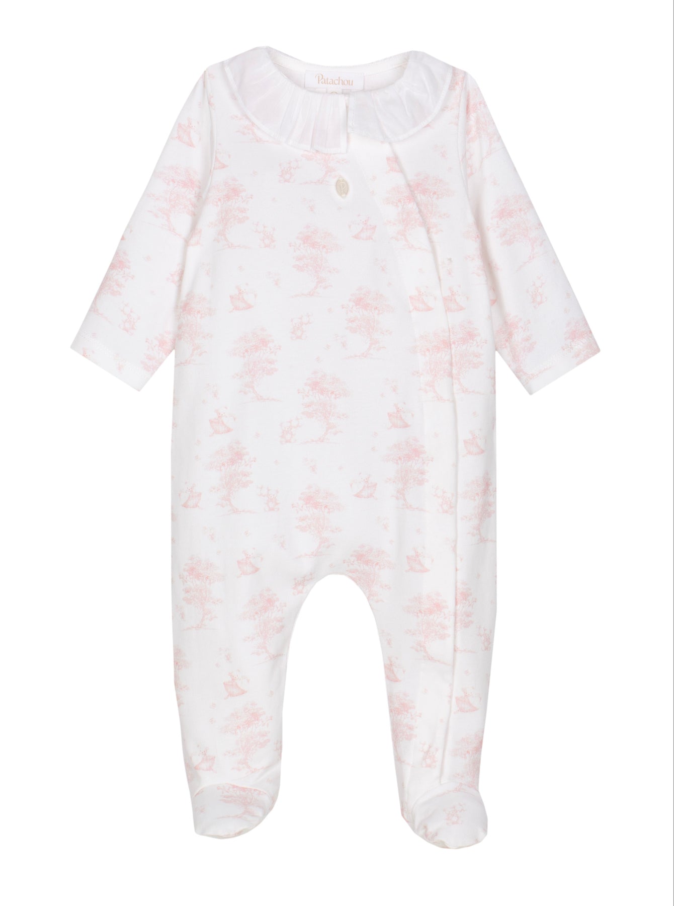 Dit Patachou baby pakje met Toile de Jouy print is perfect als kraamcadeau, voor een eerste outfit of een bijzondere gelegenheid. Een stijlvolle keuze voor ouders die houden van klassieke babykleding met een moderne, zachte touch.
