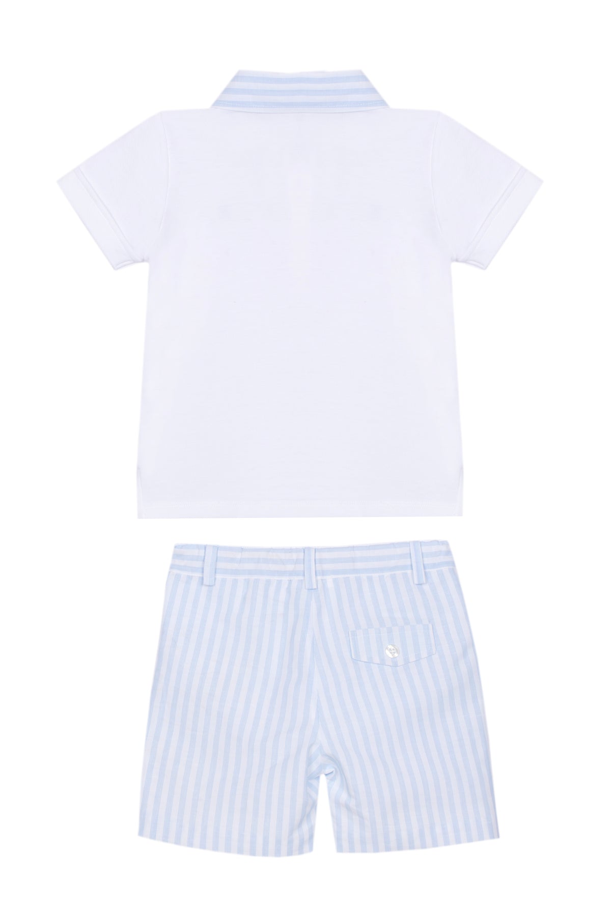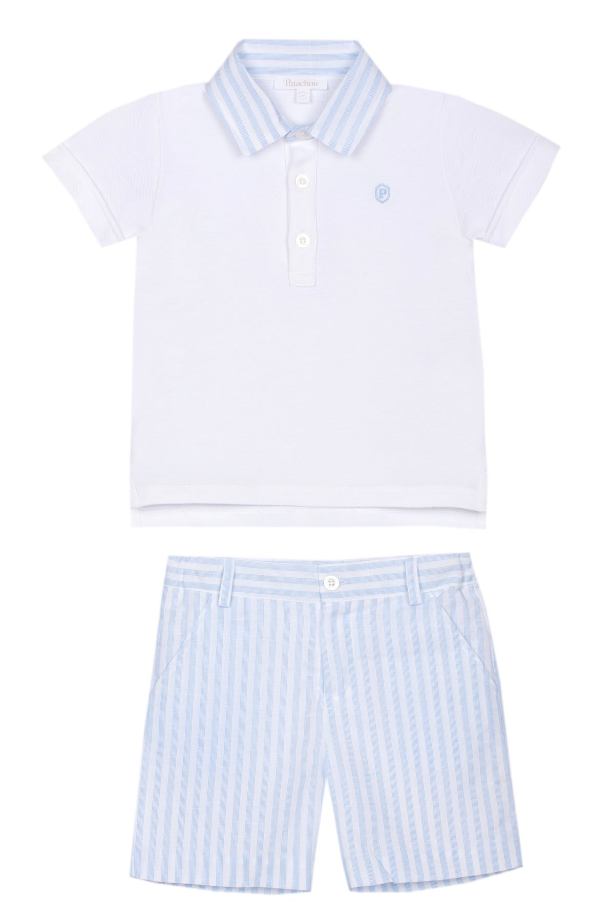 Dit stijlvolle jongenssetje van Patachou is een echte klassieker die jarenlang mooi blijft. De set bestaat uit een wit polo shirt van heerlijk rekbaar katoen en een lichtblauw gestreepte short, samen goed voor een tijdloze en verzorgde uitstraling.