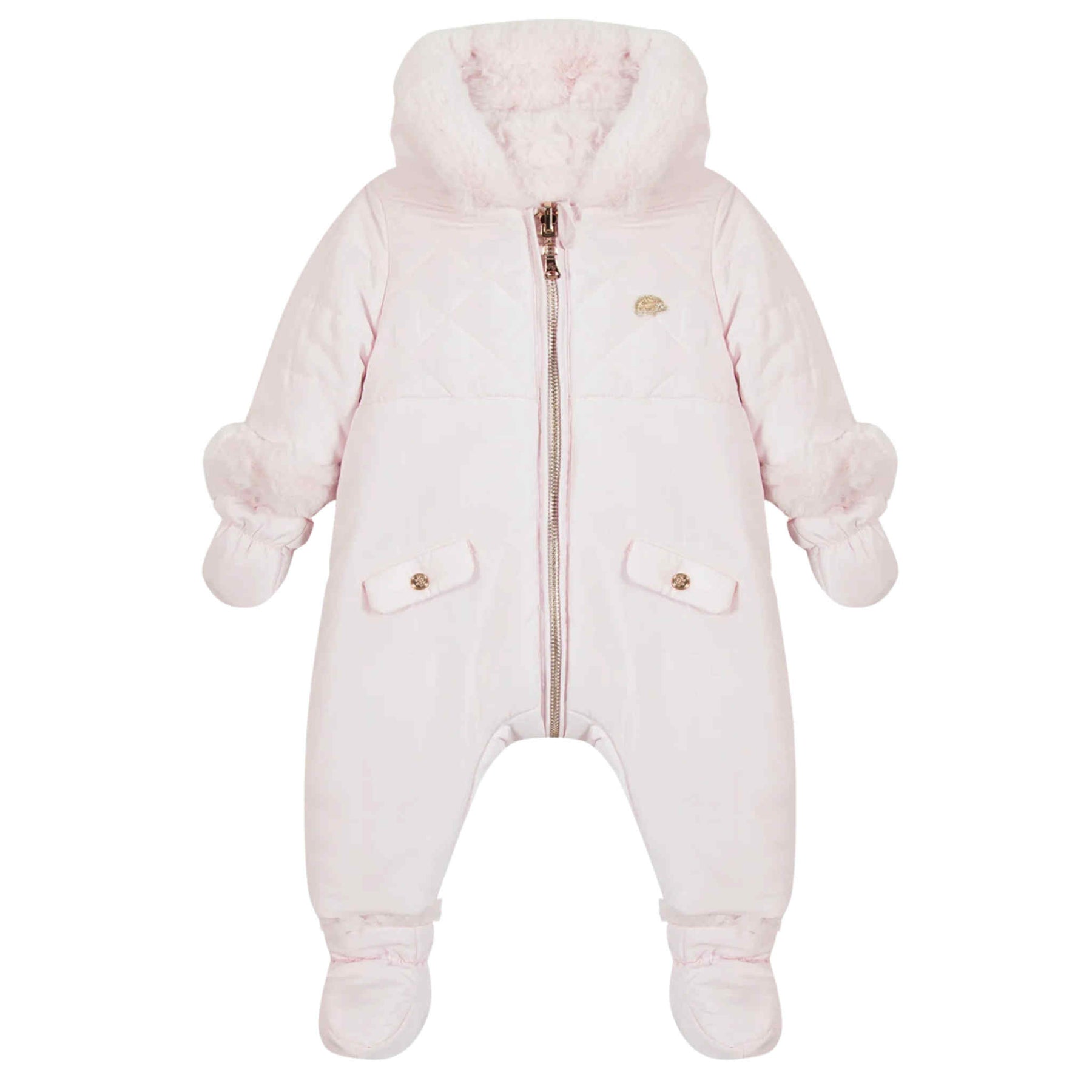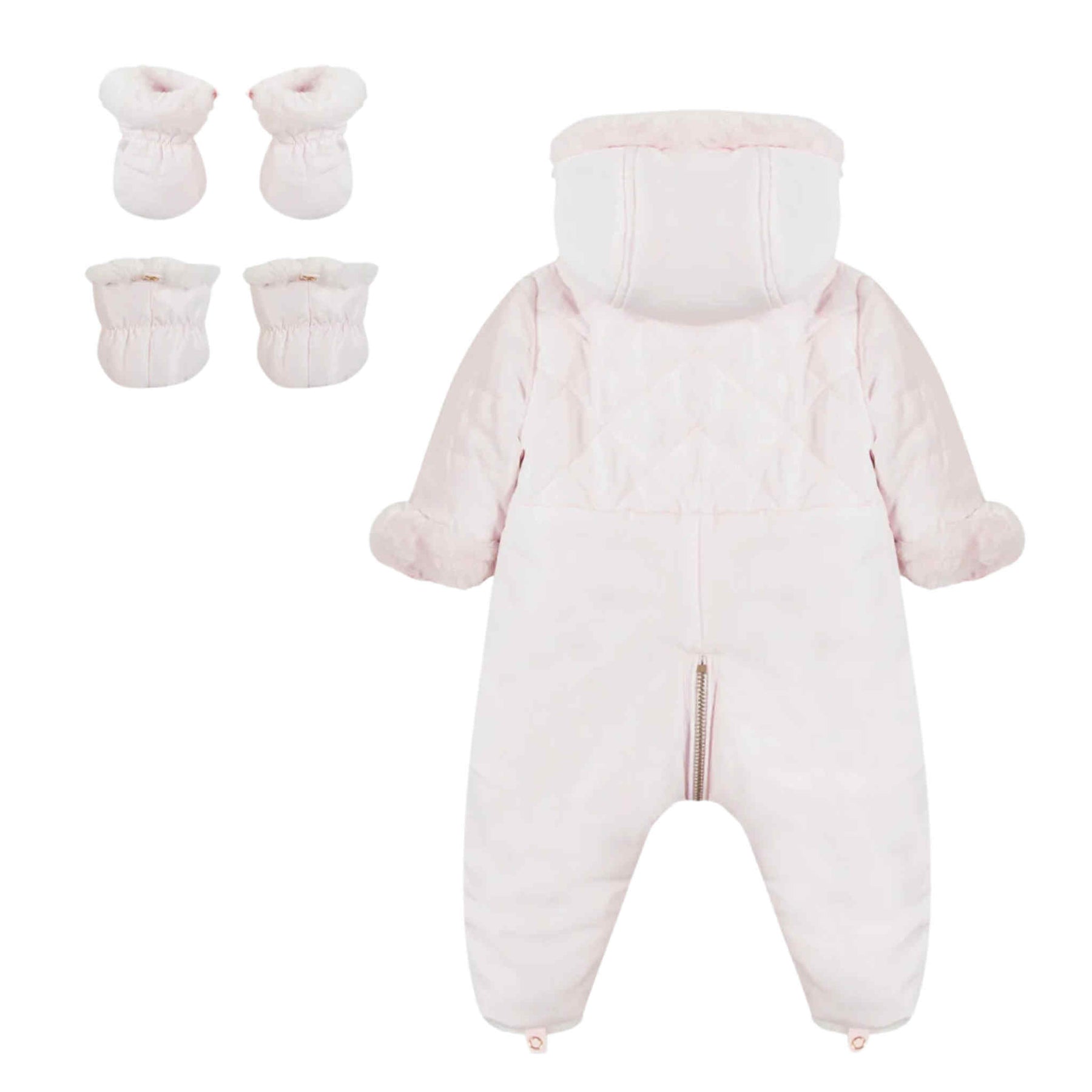 Ga stijlvol en warm de winter door met dit prachtige skipak van Tartine et Chocolat uitgevoerd in een pale pink (lichtroze) kleur met elegante gouden dteails, is dit een echte klassieker welke ieder seizoen opnieuw terugkomt in de collectie. Het skipak is gevoerd met heerlijke zachte faux fur waardoor je kleintje altijd comfortabel en behaaglijk blijft zelfs op de koudste dagen.