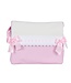 Deze prachtige luxe kunstleren luiertas met klep is aan de voorkant op de klep afgewerkt met een broderie rand met mooie satijnen linten. De tas gaat open met een klep en kan gemakkelijk open- en dicht d.m.v. een ritssluiting. De tas is perfect voor alle benodigdheden voor het kindje, de binnenkant is bekleed met gelamineerde stof welke makkelijk af te nemen is. De tas heeft een lang hengsel welke op twee manieren kan worden bevestigd d.m.v. druk knoopjes.