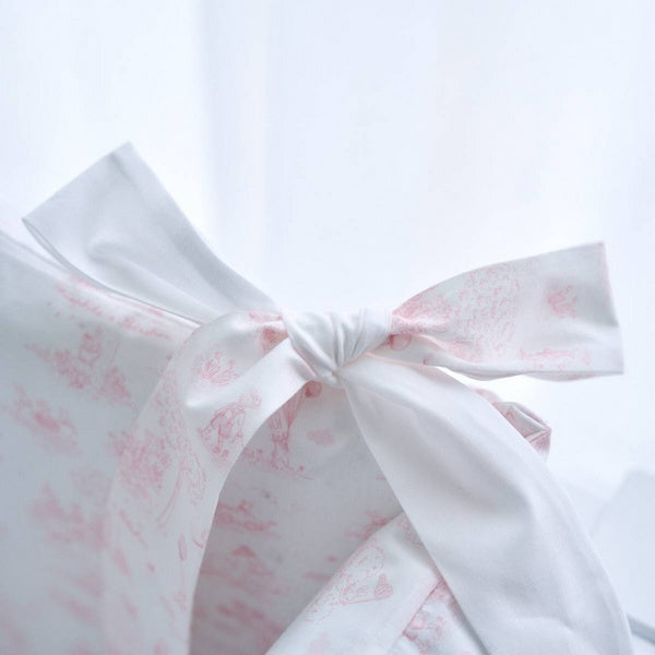 Bedomrander ook wel bekend als bedbumper uit de Pink Garden Party Collectie van het merk Theophile et Patachou. De omrander is verkrijgbaar is twee verschillende maten 60x12 & 70x140. De omrander is ontworpen om een zachte bescherming te bieden in de ledikant. De omrander is een elegante accessoire van hoogwaardig katoen in subtiel lichtroze/wit streep motief. De omrander is afgewerkt met mooie strik linten om hem te bevestigen aan het bedje. De omrander is ontworpen in Toile de jouy achtige print met de iconische beer van het merk Theophile et Patachou, ballonnen en mooie Maak jouw babybed stijlvol en veilig met de bescherming van deze mooie omrander.