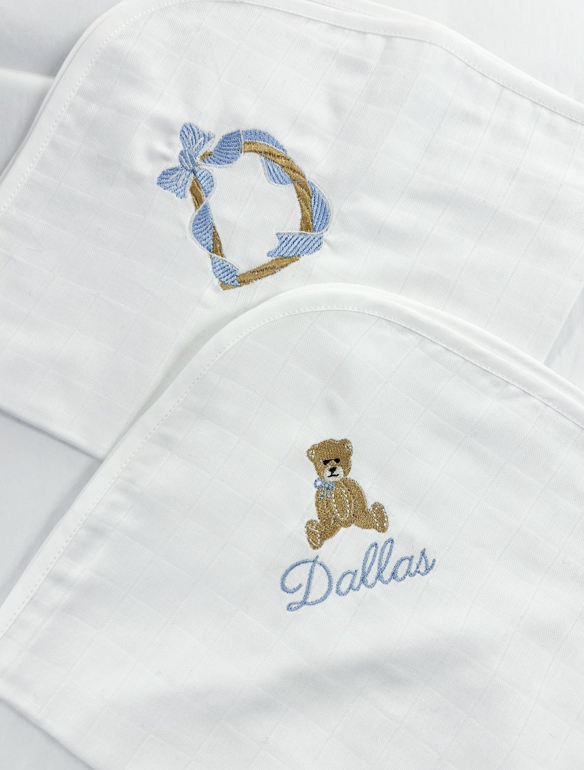 Extra leuk: deze hydrofiele doeken kunnen gepersonaliseerd worden met naam, initialen of een andere mooie borduring waardoor ze ook perfect zijn als kraamcadeau!