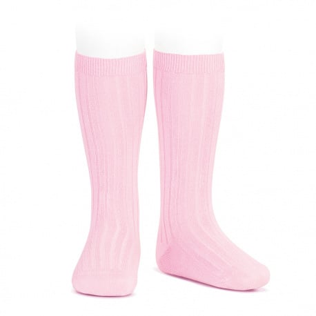 Lange rib katoenen kniekousen in lichtroze van Condor